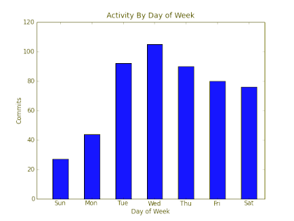It seems for some reason Tuesday is favourite day for commiting. I am not sure why. My guess will be developers get new ideas over weekend (Sat/Sun) and they implement and commit by Tuesday |