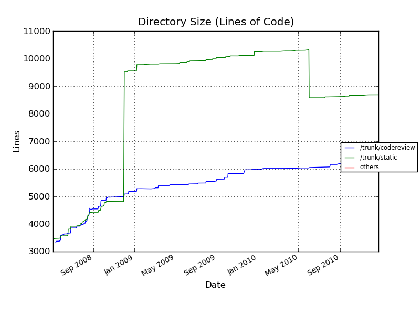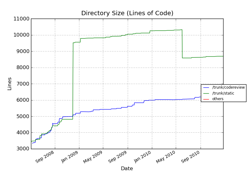 | Lines of Code At start of december jquery.js is added and that gave big jump in the LoC count. |